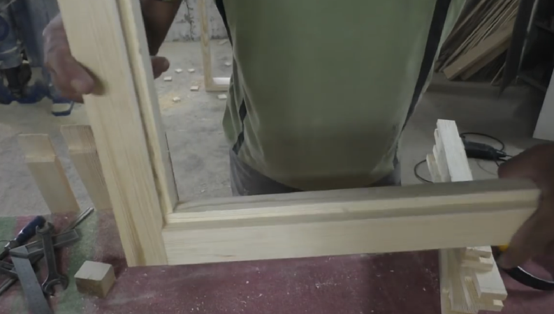 На боковых и промежуточных планках отбирается четверть. Это выборка древесины, куда будут вставляться стекла.