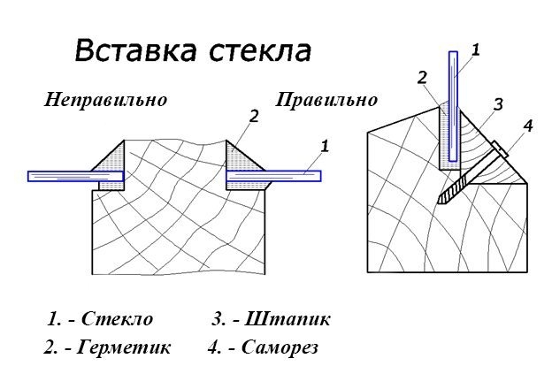 Если штапик 1-сантиметровый, выбирайте прямоугольные пазы и стекло толщиной 4 мм.