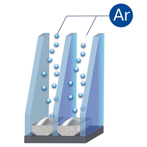 Довольно распространенным способом повышения энергоэффективности стеклопакетов является закачка инертного газа, например, аргона. По сравнению с воздухом инертный газ имеет меньшую теплопроводность. Также, благодаря его большей вязкости, улучшаются шумозащитные характеристики.