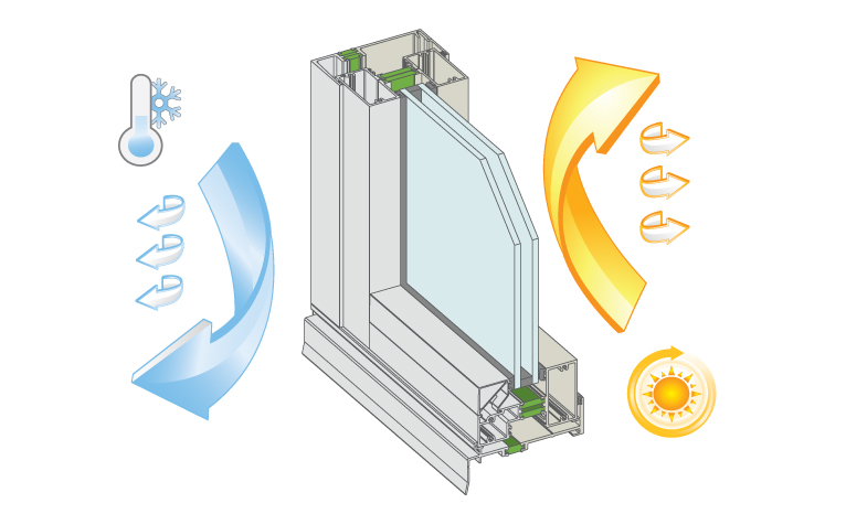 Энергосберегающие свойства стеклопакетов определяются в основном уникальными качествами применяемых стёкол (k, i, iM). Эти материалы обладают свойством отражать тепло в направлении излучения. Радиаторы, приборы отопления, бытовая техника и даже тело человека – источники тепла в виде длинных инфракрасных волн. Низкоэмиссионное стекло в составе стеклопакета возвращает тепловой поток от бытовых приборов в комнату, а от солнца, нагретого асфальта и зданий на улицу.