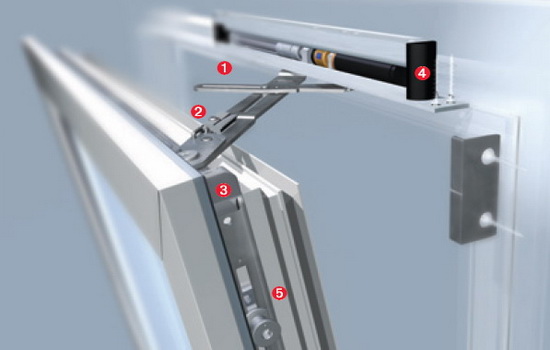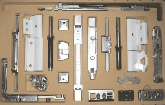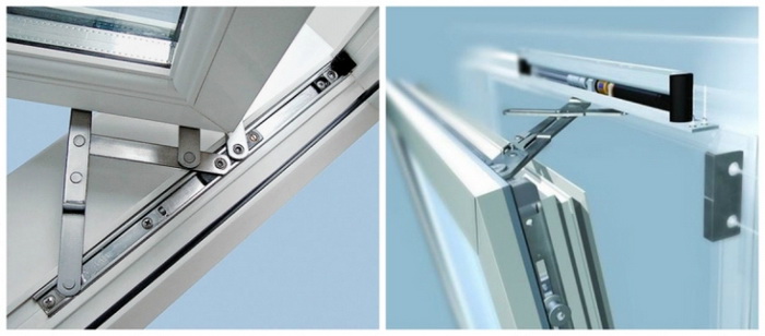 - Оконная фурнитура. Разветвленный механизм, отвечающий за закрытие и открытие оконной створки.