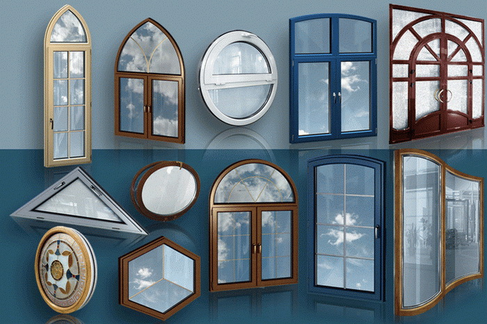 - Форме. Современные окна могут иметь разную форму, быть: круглыми, овальными, трапецеидальными, треугольными, квадратными и т.д.
