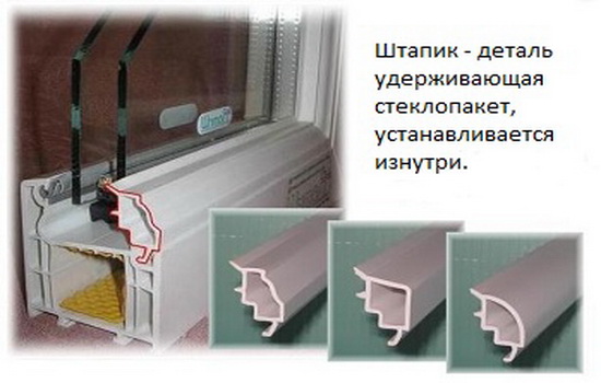 Пластиковый элемент, с помощью которого происходит крепление стеклопакета к оконному профилю.