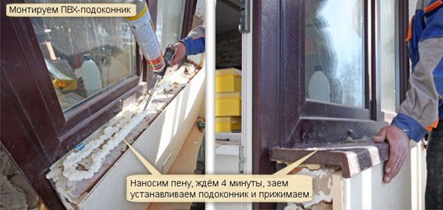 - прижимают ее к подоконной плите;