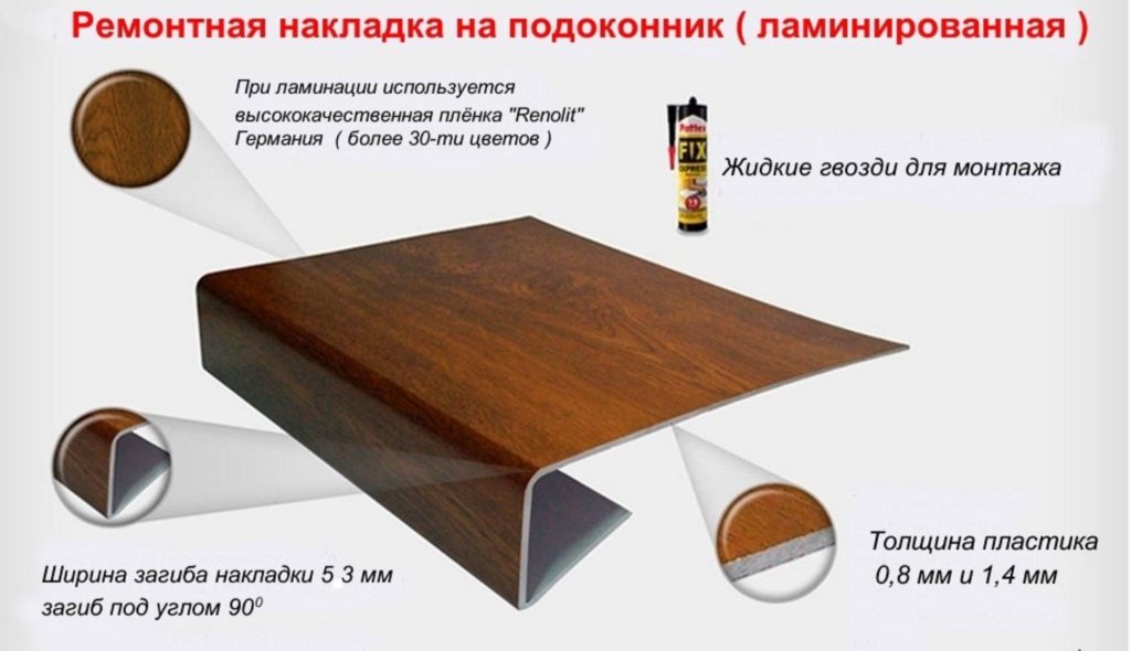 При выборе накладки для ремонта ПВХ подоконника обращают внимание на ее толщину, устойчивость к УФ-лучам, устойчивость к воздействию агрессивных веществ, соответствие цвету и стилю оконной конструкции.