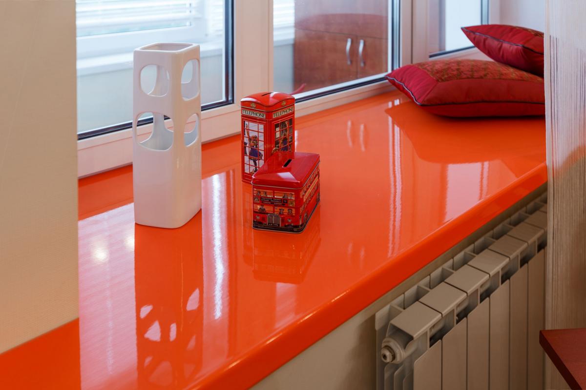 Материал дополнительно укрепляет поверхность подоконника. Акрилом можно изменить цвет и текстуру подоконника. Отлично скрывает трещины, царапины и сколы.