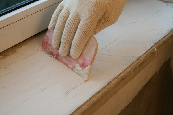 Работу с деревянной поверхностью начинают с удаления краски. Для этого используют зубчатый шпатель, растворители, строительный фен. После снятия декоративного слоя оценивают качество древесины визуально и на ощупь.