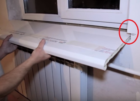 Когда заготовка будет сделана, ее необходимо примерить. Для этого положите пластиковую заготовку на поверхность подоконника и заведите его за откосы и подставочный профиль. На этом этапе необходимо устранить все неточности в измерениях, если такие имеются.