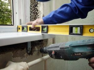 Установка подоконной доски по уровню