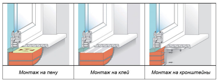 Используют несколько способов, чтобы прикрепить пластиковый подоконник:
