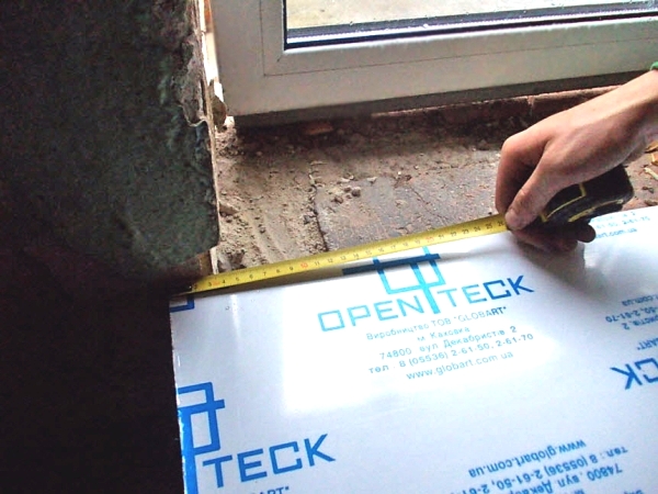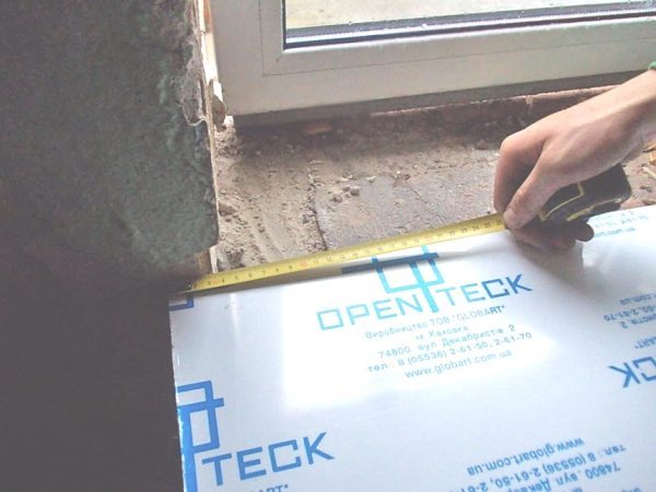 На первом этапе выполняют замеры подоконника