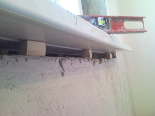 Установка подоконника с помощью деревянных подкладок требует много времени, но этот способ является самым надёжным