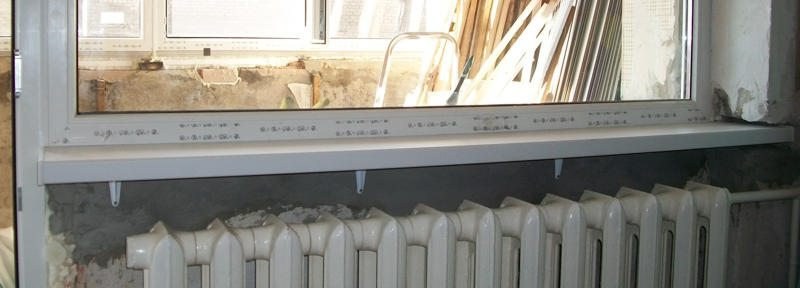 При проведении замеров стоит помнить, что длина устанавливаемой плиты должна быть немного больше расстояния между боковыми откосами. Дело в том, что изделие заводится в проделанные пазы глубиной в 2–3 см. Как правило, подоконник монтируется над батареей, поэтому величина переднего выступа плиты должна составлять не более 8 см. Если же этот показатель будет больше, то ПВХ-плита не позволит горячему воздуху подниматься от радиатора к окну. А это приведёт к образованию влаги. Что касается вертикального расстояния между батареей и подоконником, то оно должно быть более 10 см.