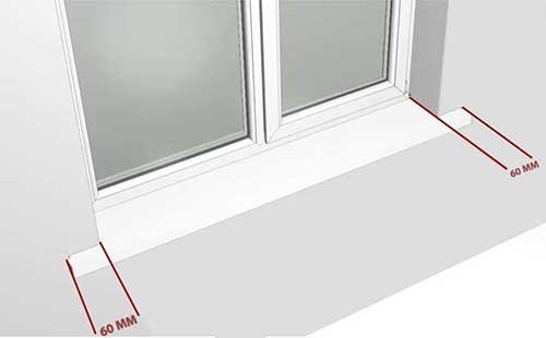 Важно: Подоконник должен плотно стыковаться с оконной рамой, а зазор между плитой и стенами не должен превышать 4 мм. «Уши» изделия (часть, выступающая за внутренние откосы) также должны быть плотно прижаты к стене.