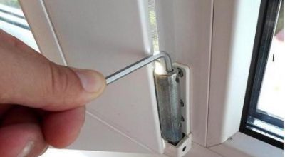 Если створка неплотно прижата в верхней части, или вообще провисла, вам необходимо отрегулировать ее через ножницы. Найдите на них – около верхней петли – регулировочный винт, и закрутите его шестигранным ключом. Традиционно, движение ключа по часовой стрелке означает более сильный прижим к раме.