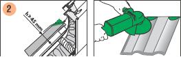 - Далее вставляем боковые части до упора вниз. К обрешетке секции монтируются при помощи кляммеров.