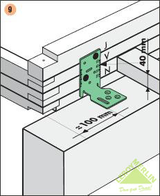 9. Монтажные уголки прикрутить к оконной коробке на расстоянии 10 см от края так, чтобы они не попадали на обрешетку крыши. Снаружи оконной коробки отфрезерованы пазы, обозначенные буквами (N, V и J) соответствующие различной глубине посадки окна. Каждому пазу соответствует определённый тип оклада. В обозначении оклада тип оклада (N, V или J) обозначен последней буквой, например, EZV 06. Монтажные уголки прикрутить к коробке таким образом (рис.9), чтобы цифра на мерной линейке уголка (рис. 9): соответствовала толщине обрешётки; совпадала с пазом выбранной глубины посадки окна. Выбранная глубина посадки окна (N, V или J) должна соответствовать обозначению на упаковке оклада. Монтаж окна в крыше со сплошной обрешёткой производиться аналогично монтажу окна на стропилах.’