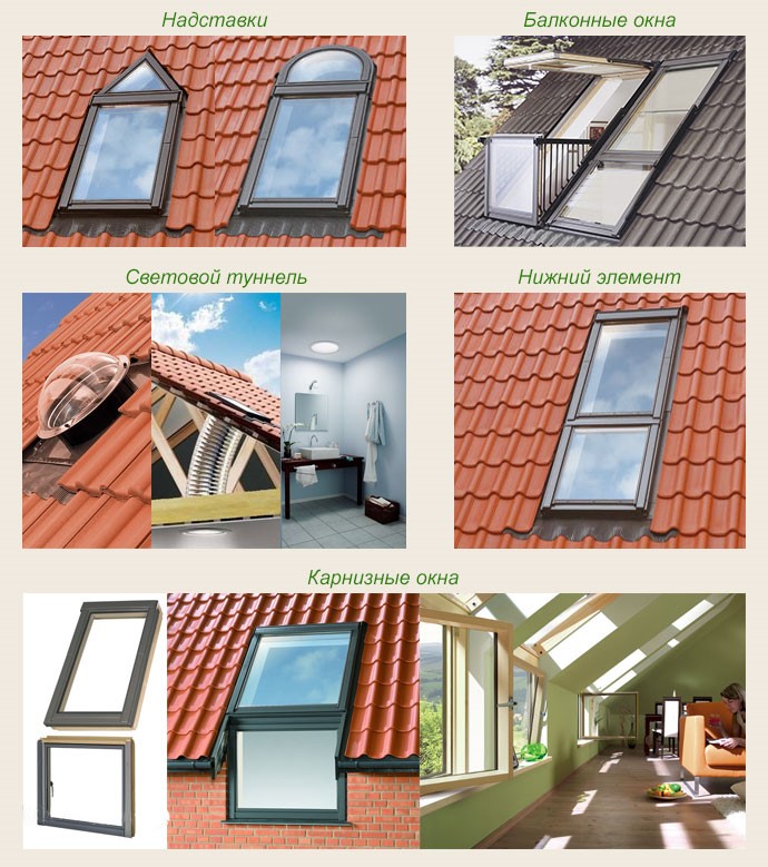 - Балконные элементы. Дополнение, которое обеспечивает выход на балкон. Их часто применяют, при сильном уклоне крыши.