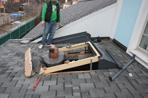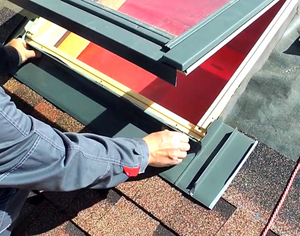 Отдельно следует отметить работу с кровельным материалом. Монтаж мансардных окон в металлочерепицу производится аналогично, равно как и в случае с профнастилом или листовым железом. Если же речь идет о мансардных окнах в фальцевой кровле или подобных материалов, то обшивку вначале потребуется разобрать.