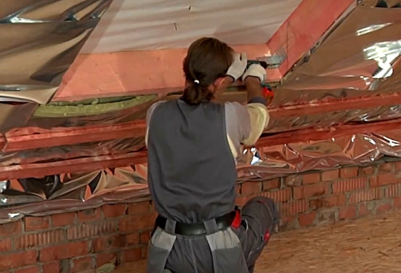Если потолок мансарды отделан панелями или подобным материалом, то их можно предварительно демонтировать. Это позволит узнать расположение стропил, а также облегчит нам жизнь. Обратно панели монтируем только по завершению работ — в таком случае вы их не повредите.
