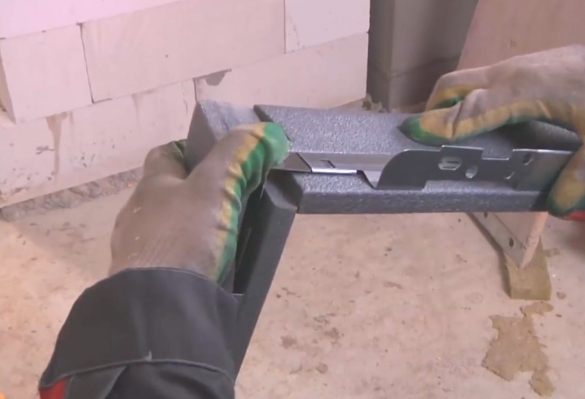 - Верхнюю секцию оклада прикрепляем к обрешетке кляммерами. К коробке прижимаем её на шурупы.