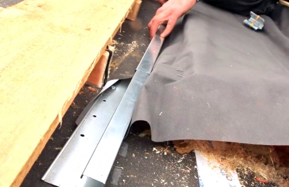 - Теперь кровельный материал подводим к фальцу на окладе.