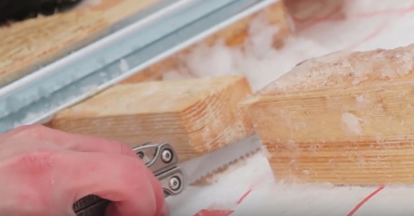 - Еще раз проверив правильность фиксации, устанавливаем теплоизоляцию — закладываем её в зазор между коробкой и кровлей, не оставляя даже малейших щелей! Помните, что на конструкцию будет оказываться колоссальная нагрузка, поэтому не допустимы даже минимальные погрешности и зазоры.