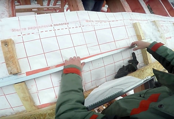 - Рамы монтируются обязательно к стропилам, а не к обрешетке! Также организовываются горизонтальные рейки из бруса, который набивается на стропила.