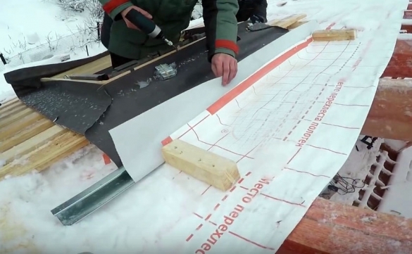 - Если наблюдаются излишки кровли, подрезаем её, оставив 5-10 мм.