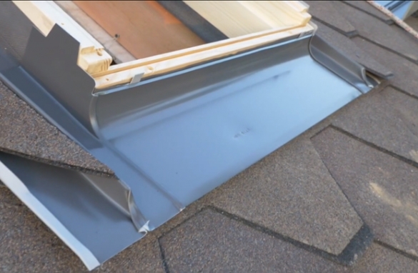 Первым делом прикрепить следует нижнюю часть оклада мансардного окна. Устанавливать его следует таким образом, чтобы фартук гидроизоляции выходил и за саму раму, и за листы кровли. После следует перейти к боковым комплектующим. Края этих элементов должны быть уложены на саму раму.