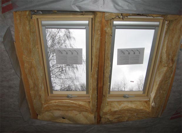 Про работу с утеплителем на крыше следует сказать отдельно. Очень часто неправильное утепление мансардных окон оборачивается множеством проблем с его эксплуатацией. Многие неопытные строители предпочитают использовать для утепления обычную монтажную пену. Делать этого не стоит: расширение материала может привести к перекосам и проблемам с изоляцией. Правильная технология монтажа рекомендует использовать материалы в виде матов каменной ваты с высоким сроком службы.