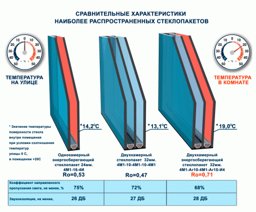 - Обычные окна. Такая конструкция может иметь стеклопакет любой ширины, как правило, это не больше двух воздушных камер: никаких дополнительных опций нет.