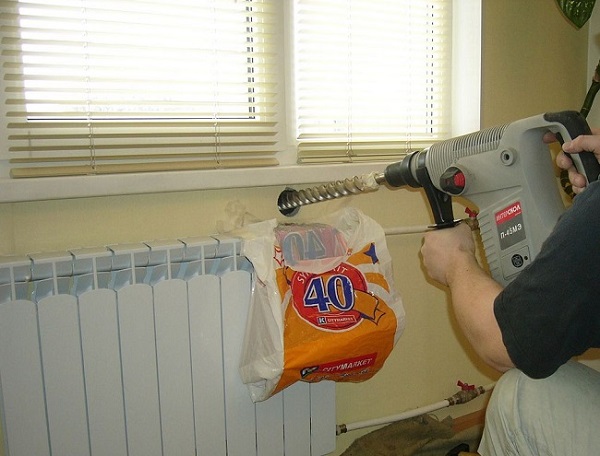 Установка стенового приточного клапана в ряде ситуаций требует специального оборудования. Это в первую очередь касается монтажа клапанов большого диаметра в толстые стены. Чтобы сделать отверстие понадобится мощный перфоратор и бур соответствующего диаметра и длины.