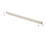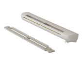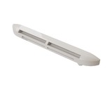 Узкую продолговатую пластиковую деталь представляет собой вентиляционный клапан для пластикового окна. Проемы, из которых выходит забранный на улице воздух, направлены вверх. Благодаря этому нет сквозняков и остается постоянной температура воздуха в помещении.