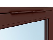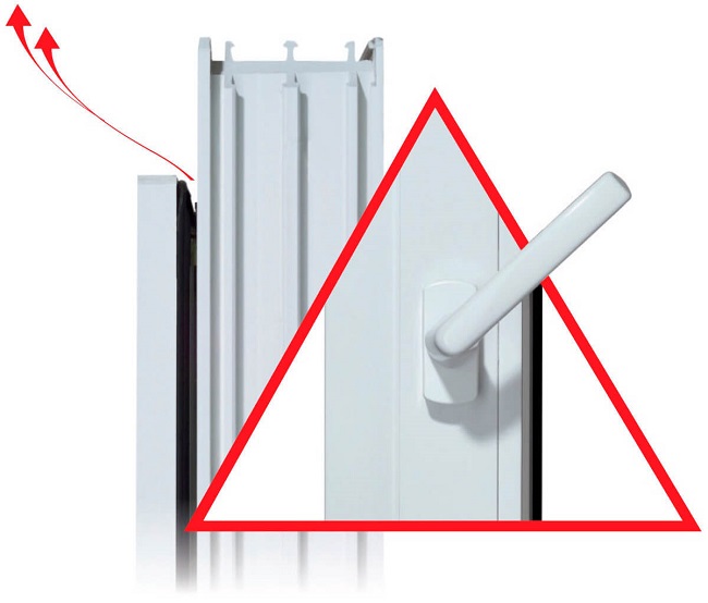 Более эстетичный, когда ступенчатый механизм расположен с внутренней стороны створки (под фальцем) и внешне не заметен окружающим. Регулировка зазора в таких случаях выполняется при помощи ручки открывания и будет соответствовать степени ее наклона (3-5 позиций между откидным и поворотным положением);