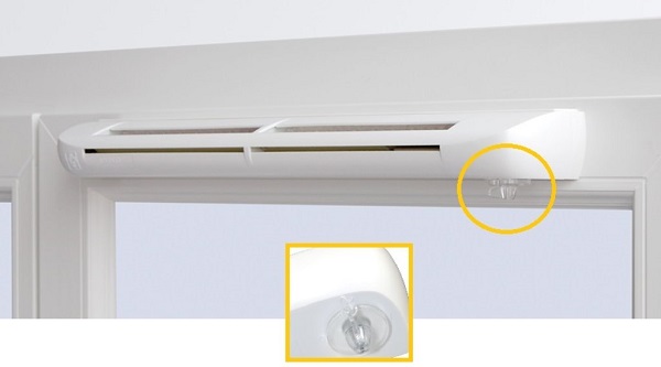 С ручной регулировкой. Клапан устанавливается либо на створке, либо на раме блока. Фактически, это отверстие, закрытое декоративными решетками с обеих сторон, оборудованное клапаном, фильтрующим элементом и заслонкой для регулировки потока воздуха. Приточный клапан Aereco монтируется на створку окна