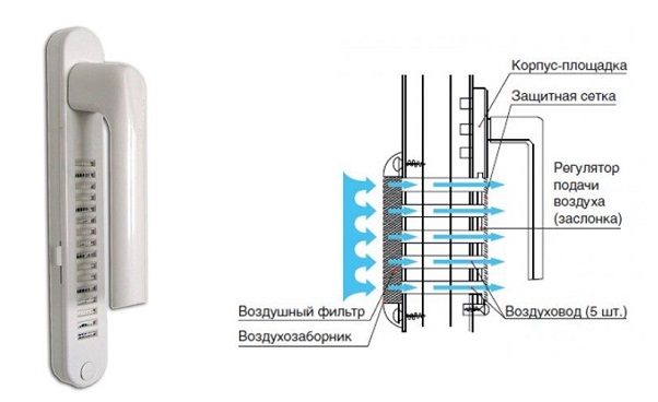 В отличие от стеновых аналогов, данные вентиляционные элементы монтируются непосредственно в оконный блок. В зависимости от конструкционных особенностей и способа проветривания различают следующие разновидности: