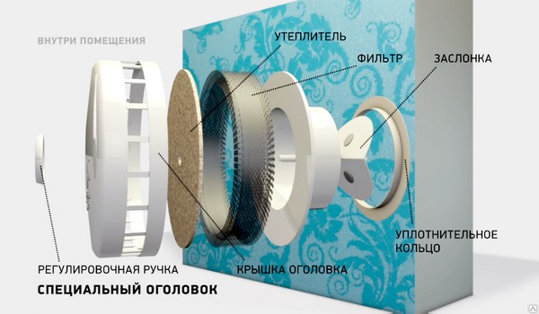 В клапан вмонтирован воздушный фильтр, который препятствует проникновению пыли в жилое помещение. Его нужно заменять каждые полгода.