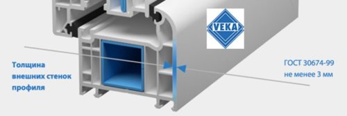 В строительной индустрии толщину стенок оконных профилей подразделяют на 3 класса: А, В и С. Оба производителя окон относятся к рассматриваемому параметру ответственно и выпускают продукцию А и В класса в соответствии с евростандартом. Однако российский ГОСТ более жестко относится к этому параметру – 3,0 мм против 2,8 мм в Европе. Здесь в регламент российских требований вписывается только Века – выпускает профиль класса А (по ГОСТ), что дает ей преимущество.