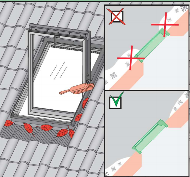 Над окном должно быть установлено специальное приспособление для отвода дождевой воды, оно тоже продается в комплекте. Для того чтобы можно было установить мансардное окно, скат крыши должен быть не меньше 15 градусов. Некоторые владельцы помещений все равно устанавливают окна на более плоскую кровлю и совершают ошибку, так как в этом случае конструкция будет достаточно быстро разрушена, особенно если перекрытия у здания не деревянные, а железобетонные.