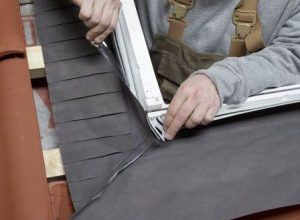 - Вокруг окна потребуется уложить гидроизоляцию. Обычно она продается в готовом виде вместе с окнами. Не стоит забывать про желоб. Закрепить все это можно при помощи оцинкованных гвоздей, простые использовать не стоит, так как они заржавеют.