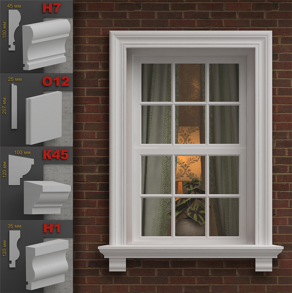 Фасадные наличники из пенополистирола не только превосходно смотрятся на любых оконных и дверных проемах, но и отлично скрывают нежелательные зазоры, образовавшиеся между стеной и рамой окна или двери. Они защищают наш дом от сквозняков, ведь пенопласт – это еще и замечательный утеплитель.
