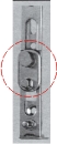 Нижняя (угловая) цапфа, если приглядеться, на самом деле состоит из двух цапф (вторая меньшего размера) на одном основании. Её точное название – подпружиненный откидной запор – на рисунке ниже обведён красным кружком: