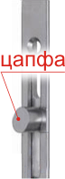 Когда мы поворачиваем ручку вниз, цапфы задвигаются за ответные планки , установленные напротив на раме и импосте. На рисунке ниже изображена цапфа, заведённая за ответную планку:
