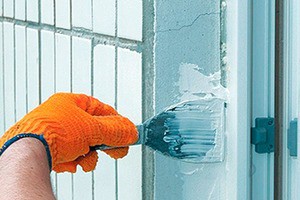 Последний этап – отделка. Швы по бокам покрываются силиконовым клеем, а нижняя щель замазывается шпатлевкой.
