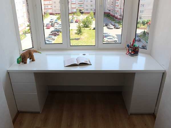Столы по тем же причинам ставят рядом с окном – в другом месте рабочее место потребует некоторых изменений. Не увеличивая параметры окна, рекомендуется понизить положение подоконной панели до 0.6-0.65 м. Это помогает осветить темные углы.