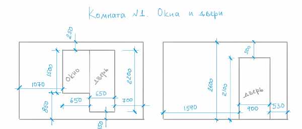 Рис. 2. Стандартные параметры окна, дверей в комнате
