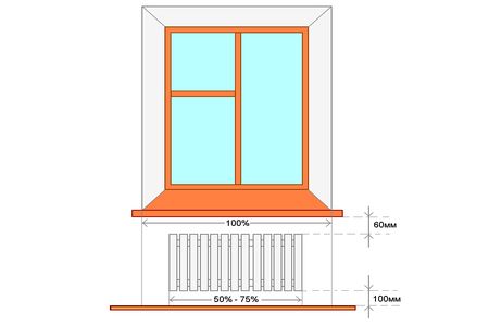 За основу расчета принимается размер радиаторов отопления, высота которых составляет 50 см.