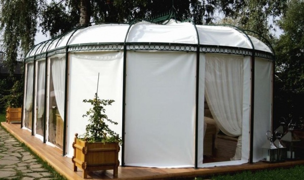 Мягкими окнами называют специальные шторы для веранд (беседок), созданные из лавсановой ткани с ПВХ-покрытием. Вам не придется ставить на веранду или террасу тяжелые стекла, и в то же время вы защитите ее пространство от непогоды и насекомых. Это хорошее предложение для тех, кто ценит практичность, оригинальность и экологическую безопасность. К тому же цена такого решения самая демократичная.