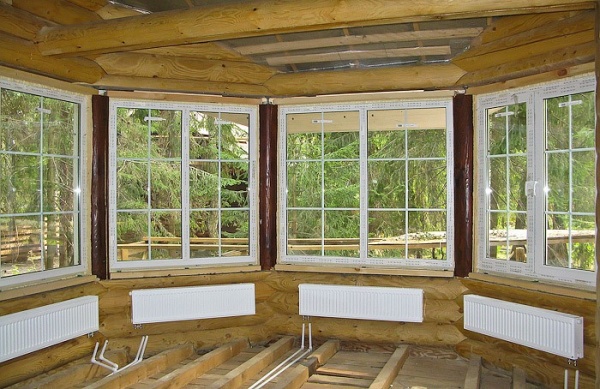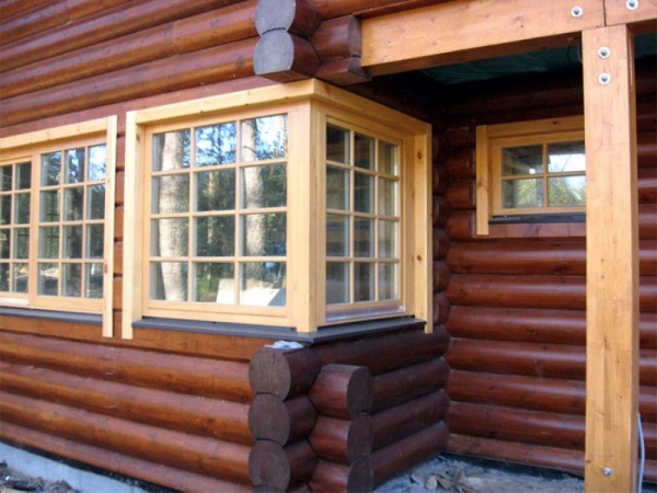 Для большего сочетания лучше подобрать деревянный брус. Конечно, можно сделать так, что даже пластиковые или алюминиевые окна максимально имитировали внешний вид древесины, но они не смогут в полной мере повторить тот благородный рисунок и текстуру. Плюс именно из деревянного бруса легче всего сделать окна по кругу, благодаря своей мягкости и податливости этот материала может повторить любую форму.